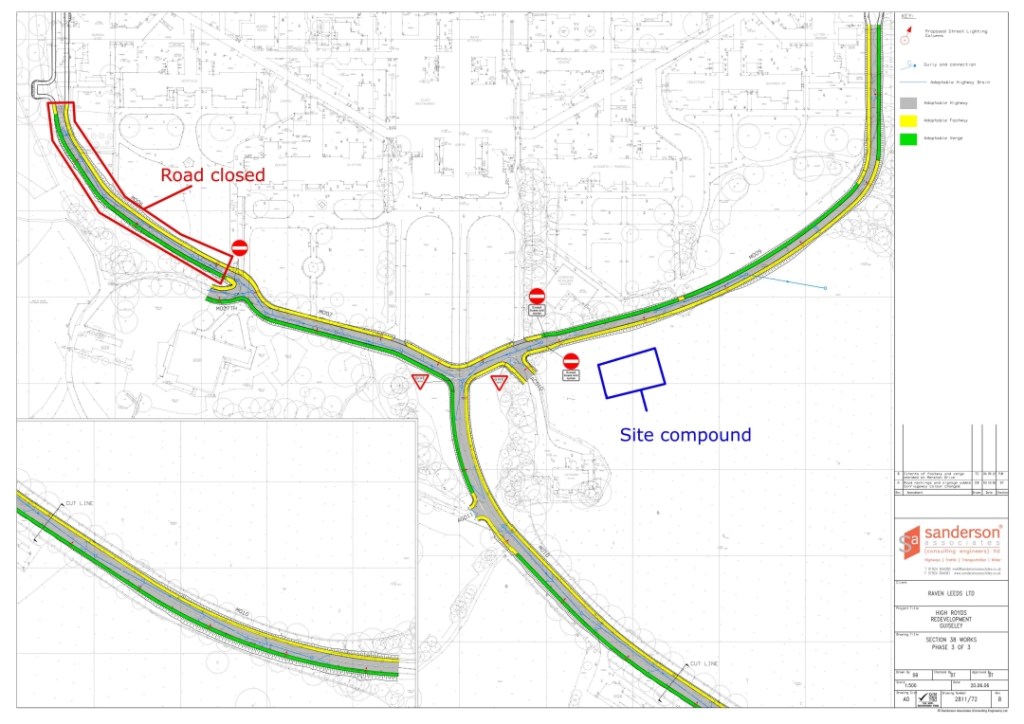 HRRA has received the following letter from Bridgebank about road closures on the estate – while re-surfacing takes place. Work is going on at the upper end of Guiseley Drive (near the Clocktower – see map below).